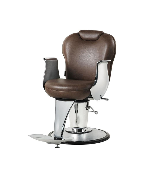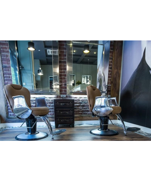 Кресло для клиента – мужское, выполнено из высококачественного поролона, каркас обтянут искусственной кожей, с выдвижным подголовником и откидной спинкой. Подлокотники и подставка под ноги металлические хромированные. Комплектуется гидроподъемником с фиксацией поворота, пластиковое основание на диске.
