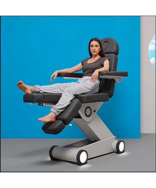 Педикюрное кресло "P155 EL PRINCIPE" 3 мотора - инновационное педикюрное кресло с 3-мя двигателями, максимальной устойчивостью и сверхкомпактным основанием. Двигатели позволяют легко регулировать спинку, высоту и положение угла наклона кресла с помощью пульта ручного управления, ножные секции регулируются пневматикой. Кресло P155 оснащено белой светодиодной подсветкой в основании. Разработано в Барселоне!